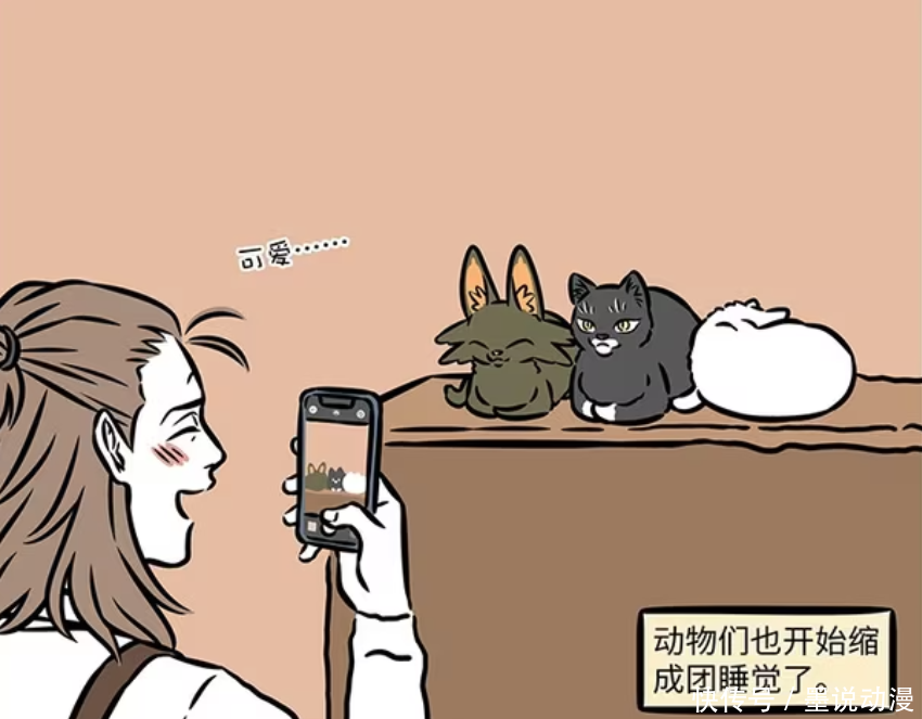 至于瓦陶陶,化为瓦猫模样,跟着观音的化身靠在一起,旁边还有一只白猫。平时观音会化为万千化身,杨戬的咖啡厅就有这么一只猫,是观音的化身。动物们缩成一团睡觉,杨戬觉得很可爱,还会拍照记录下来。