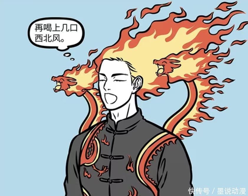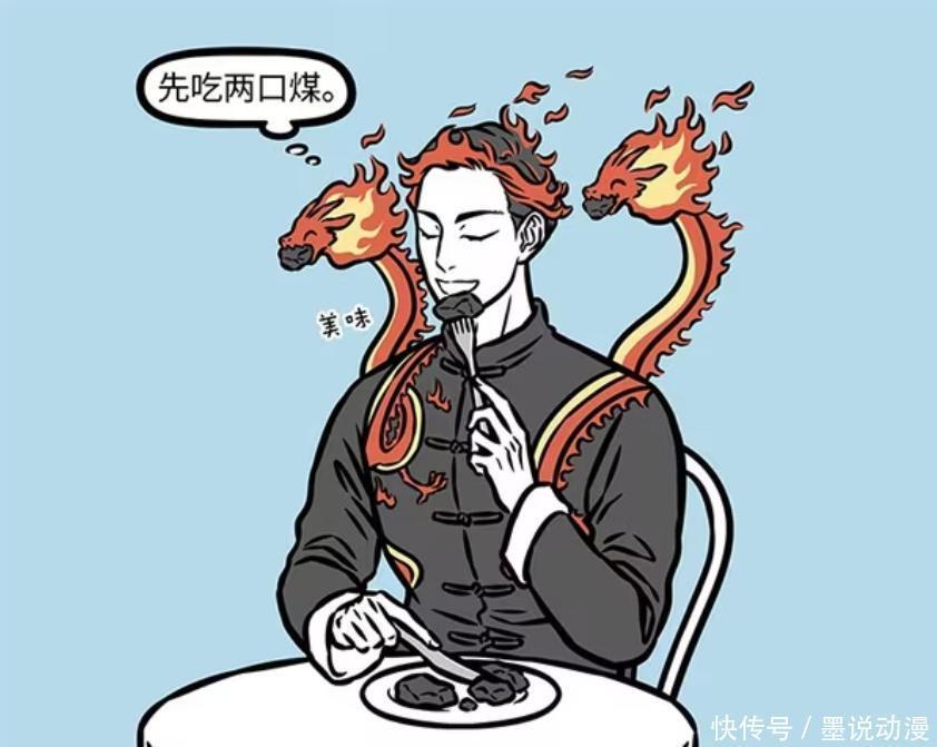 祝融吃煤炭也有仪式感,还会用上西餐餐具。优雅总不过时,祝融还是很有品味。祝融吃上两口煤炭之后,还会配上几口西北风,这样一来祝融的头发就会变成火焰形状,对于他来说,这就是享受大餐的感觉。